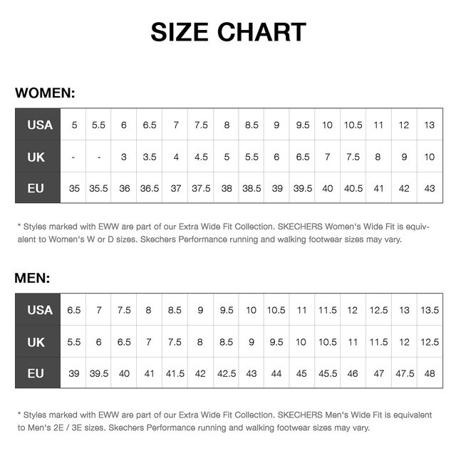 Skechers Men S And Women S Size Chart Runrepeat